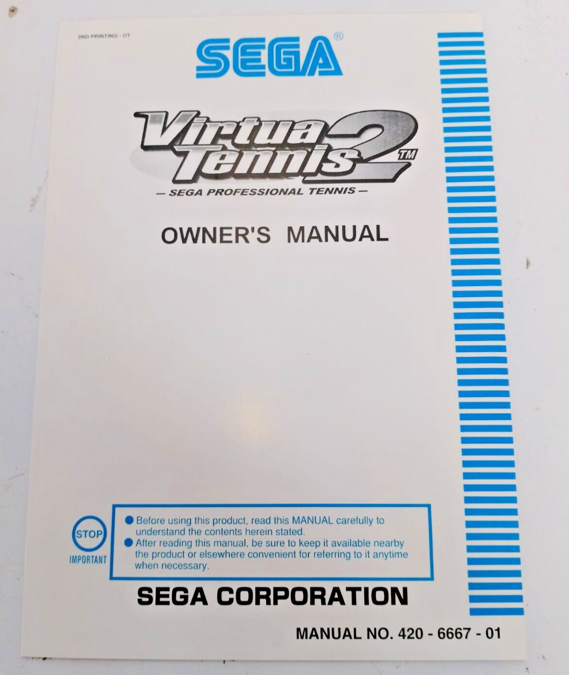Sega Naomi VIRTUA TENNIS 2 (POWER SMASH2) Game+control panel sticker+ manual